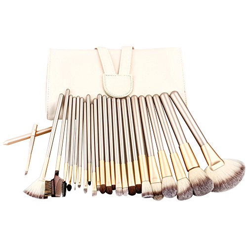 Specifications One set includes different shape brushes, they fit for every different parts makeup on face, so that you can perfect a makeup easily and effectively. High-quality goat hair feels silky soft and fine workmanship blusher better creative a long-lasting makeup tool without stimulating your skin. Durable Roll up carrying case stores and protects brushes with ease. Definitely deserves your wise buying, as you won't pay extra money for single makeup brush when in emergency. Color: showed as pictures. Package Included: 24pcs makeup brushes; 1 x white PU bag.