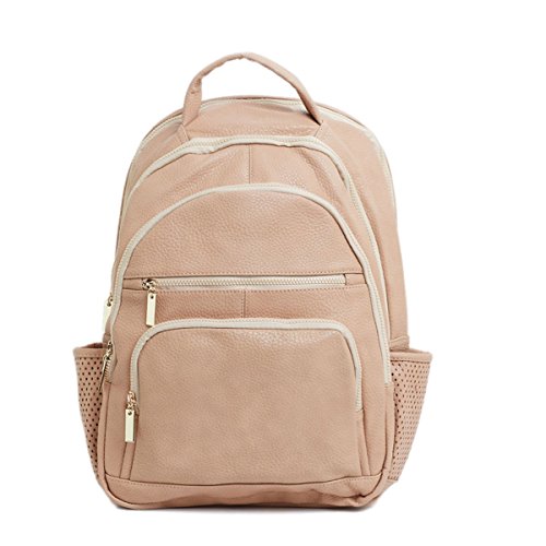 Best Seller! Ladies Faux Leather Multi Pocket Unisex College School Rucksack/Backpack HandBag (Beige) Review