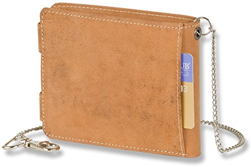 Woodland - Best Premium-Quality 9 pockets for credit cards 4 pockets for cards / Logbook Double bill compartment 2 large buttons 40 cm chain with special quick Leather floor in coin pocket Color: Cognac High-quality, natural buffalo leather WOODLAND - means longevity, tradition and the processing of natural leather. This reflects the natural structure of the products and gives every individual WOODLAND Leather individual character - leather connoisseurs appreciate the look of WOODLAND Products